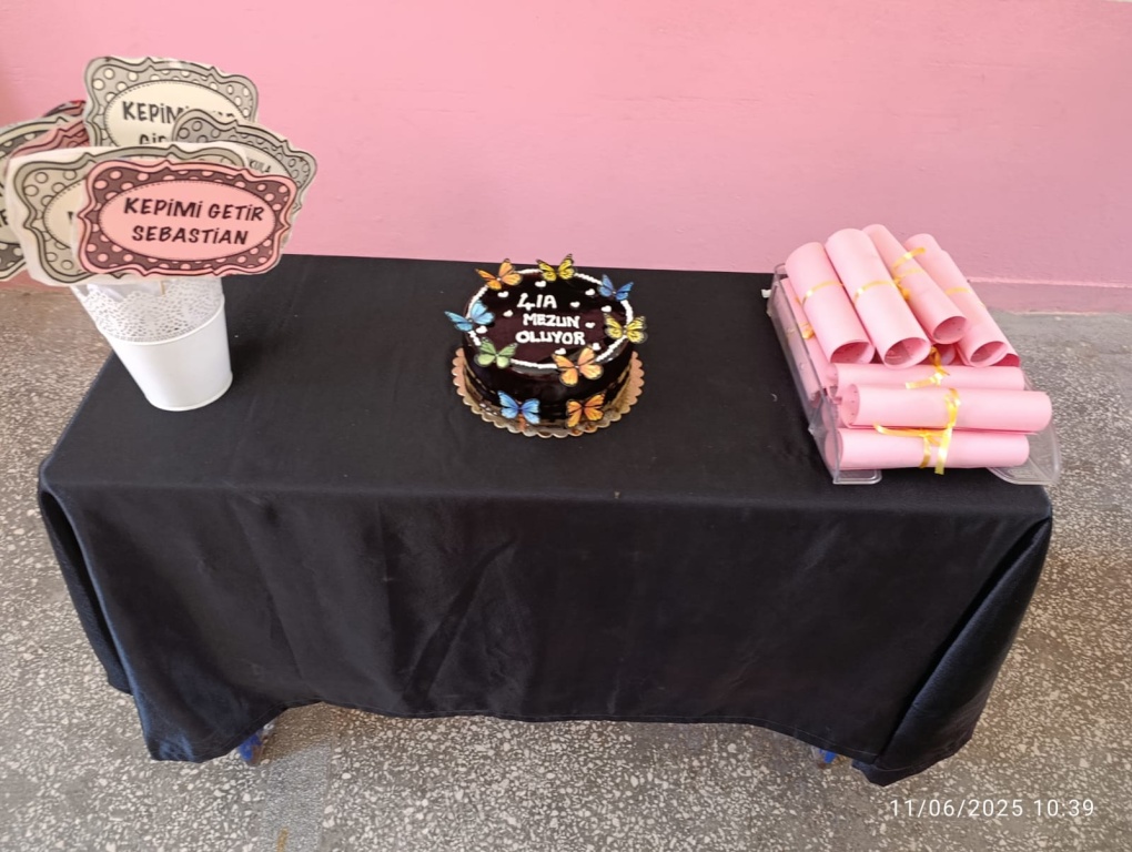 Okulumuzun 4. sınıf öğrencileri düzenlenen mezuniyet töreni ile mezuniyet sevincini aileleri ve öğretmenleri ile birlikte doyasıya yaşadı. Tören pasta kesimi ve öğrencilerimizin kep atmasıyla sona erdi. Öğrencilerimize yeni eğitim-öğretim hayatlarında başarılar dileriz.